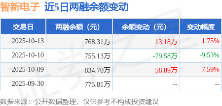 证券之星消息,10月13日,智新电子(920212)融资买入44.24万元,融资偿还31.06万元,融资净买入13.18万元,融资余额768.31万元。