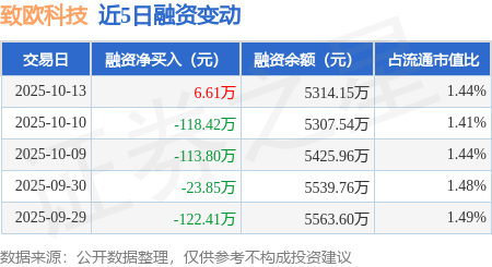 证券之星消息,10月13日,致欧科技(301376)融资买入421.29万元,融资偿还414.69万元,融资净买入6.61万元,融资余额5314.15万元。