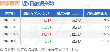 证券之星消息,10月13日,欧康医药(920230)融资买入10.26万元,融资偿还4.55万元,融资净买入5.71万元,融资余额466.67万元。