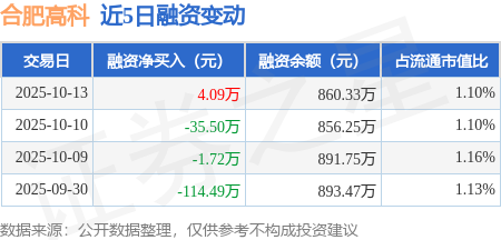 证券之星消息,10月13日,合肥高科(920718)融资买入10.53万元,融资偿还6.44万元,融资净买入4.09万元,融资余额860.33万元。
