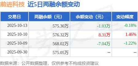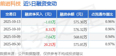 证券之星消息,10月13日,前进科技(920679)融资买入9.51万元,融资偿还10.54万元,融资净卖出1.03万元,融资余额575.3万元。