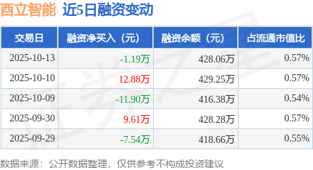 证券之星消息,10月13日,酉立智能(920007)融资买入26.98万元,融资偿还28.17万元,融资净卖出1.19万元,融资余额428.06万元,近20个交易日中有11个交易日出现融资净买入。