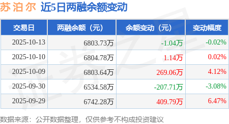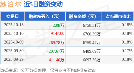 证券之星消息,10月13日,苏 泊 尔(002032)融资买入506.12万元,融资偿还508.19万元,融资净卖出2.08万元,融资余额6758.31万元,近20个交易日中有12个交易日出现融资净买入。