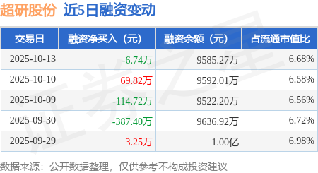 证券之星消息,10月13日,超研股份(301602)融资买入555.65万元,融资偿还562.39万元,融资净卖出6.74万元,融资余额9585.27万元。