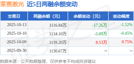 证券之星消息,10月13日,莱赛激光(920363)融资买入21.67万元,融资偿还38.94万元,融资净卖出17.26万元,融资余额1116.84万元。