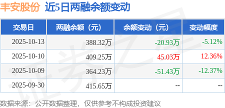 证券之星消息,10月13日,丰安股份(920608)融资买入18.67万元,融资偿还39.61万元,融资净卖出20.93万元,融资余额388.32万元。