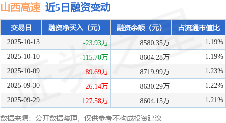 证券之星消息,10月13日,山西高速(000755)融资买入225.21万元,融资偿还249.14万元,融资净卖出23.93万元,融资余额8580.35万元。
