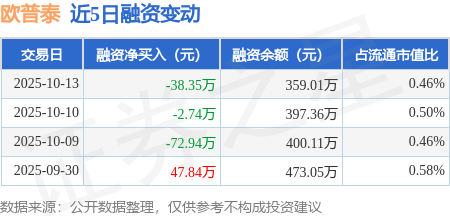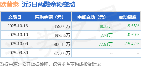 证券之星消息,10月13日,欧普泰(920414)融资买入11.04万元,融资偿还49.39万元,融资净卖出38.35万元,融资余额359.01万元。