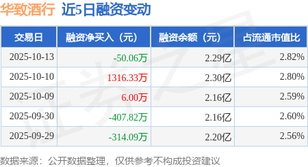 证券之星消息,10月13日,华致酒行(300755)融资买入1926.62万元,融资偿还1976.68万元,融资净卖出50.06万元,融资余额2.29亿元。