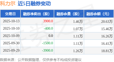 证券之星消息,10月13日,科力尔(002892)融资买入2481.25万元,融资偿还2557.37万元,融资净卖出76.12万元,融资余额3.13亿元。