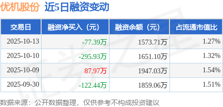 证券之星消息,10月13日,优机股份(920943)融资买入40.05万元,融资偿还117.45万元,融资净卖出77.39万元,融资余额1573.71万元。