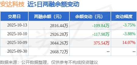证券之星消息,10月13日,安达科技(920809)融资买入185.01万元,融资偿还294.85万元,融资净卖出109.84万元,融资余额2816.44万元。