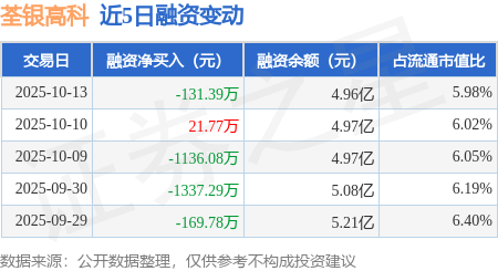证券之星消息,10月13日,荃银高科(300087)融资买入5612.73万元,融资偿还5744.12万元,融资净卖出131.39万元,融资余额4.96亿元。