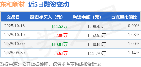 证券之星消息,10月13日,东和新材(920792)融资买入8.97万元,融资偿还153.49万元,融资净卖出144.52万元,融资余额1208.43万元。