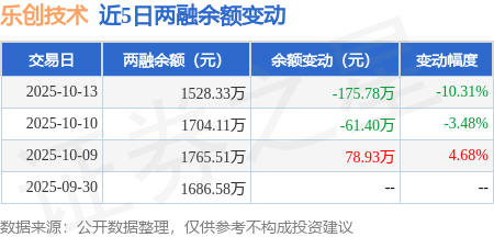 证券之星消息,10月13日,乐创技术(920425)融资买入126.79万元,融资偿还302.57万元,融资净卖出175.78万元,融资余额1528.33万元。