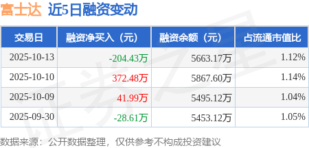 证券之星消息,10月13日,富士达(920640)融资买入352.55万元,融资偿还556.98万元,融资净卖出204.43万元,融资余额5663.17万元。