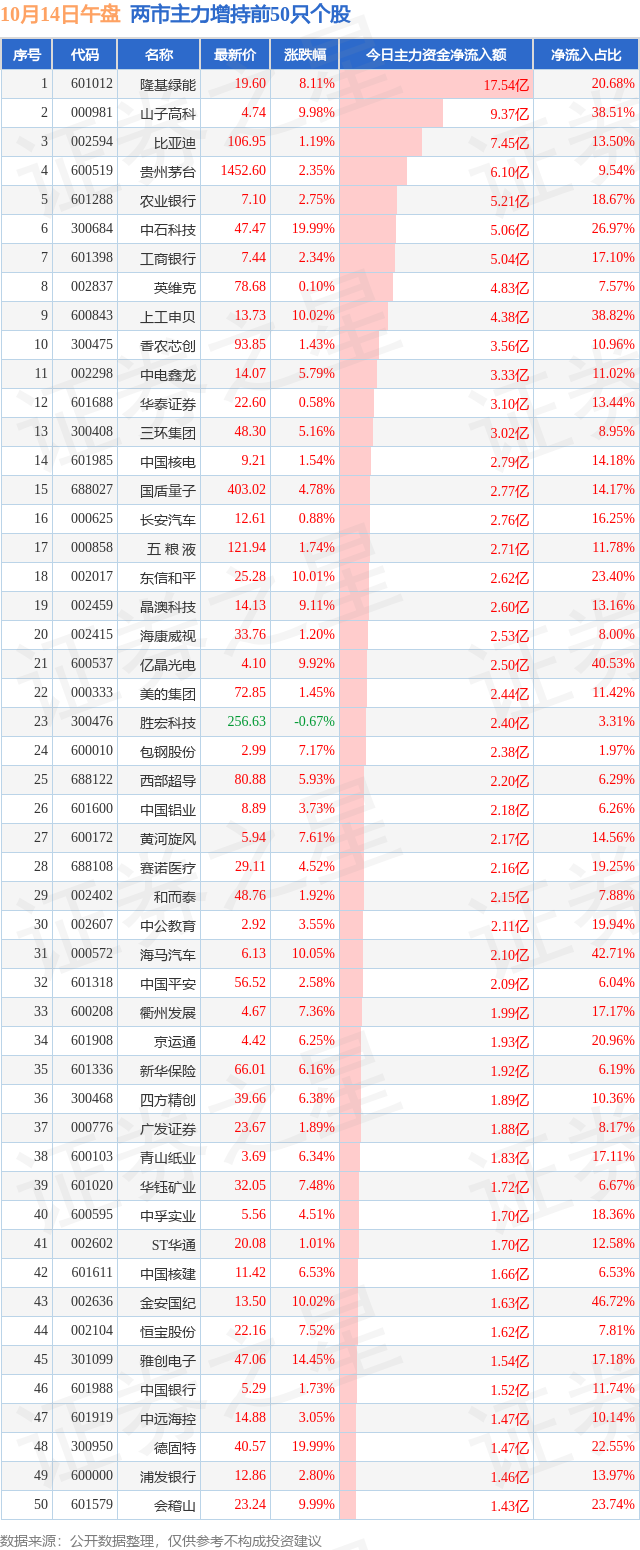 两市主力增持最多的前十只个股为: