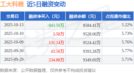 证券之星消息,10月13日,工大科雅(301197)融资买入418.42万元,融资偿还1362.0万元,融资净卖出943.59万元,融资余额8584.41万元,近20个交易日中有12个交易日出现融资净买入。