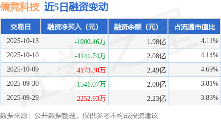 证券之星消息,10月13日,儒竞科技(301525)融资买入2604.0万元,融资偿还3604.46万元,融资净卖出1000.46万元,融资余额1.98亿元。