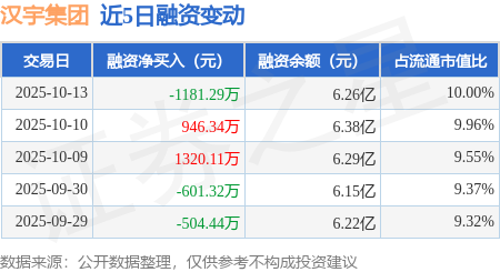 证券之星消息,10月13日,汉宇集团(300403)融资买入4029.92万元,融资偿还5211.21万元,融资净卖出1181.29万元,融资余额6.26亿元,近20个交易日中有14个交易日出现融资净买入。