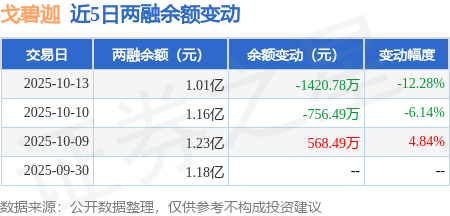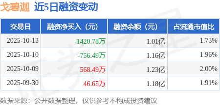 证券之星消息,10月13日,戈碧迦(920438)融资买入197.57万元,融资偿还1618.35万元,融资净卖出1420.78万元,融资余额1.01亿元。