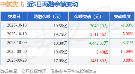 证券之星消息,10月13日,中航沈飞(600760)融资买入3.77亿元,融资偿还3.97亿元,融资净卖出2027.16万元,融资余额19.47亿元。