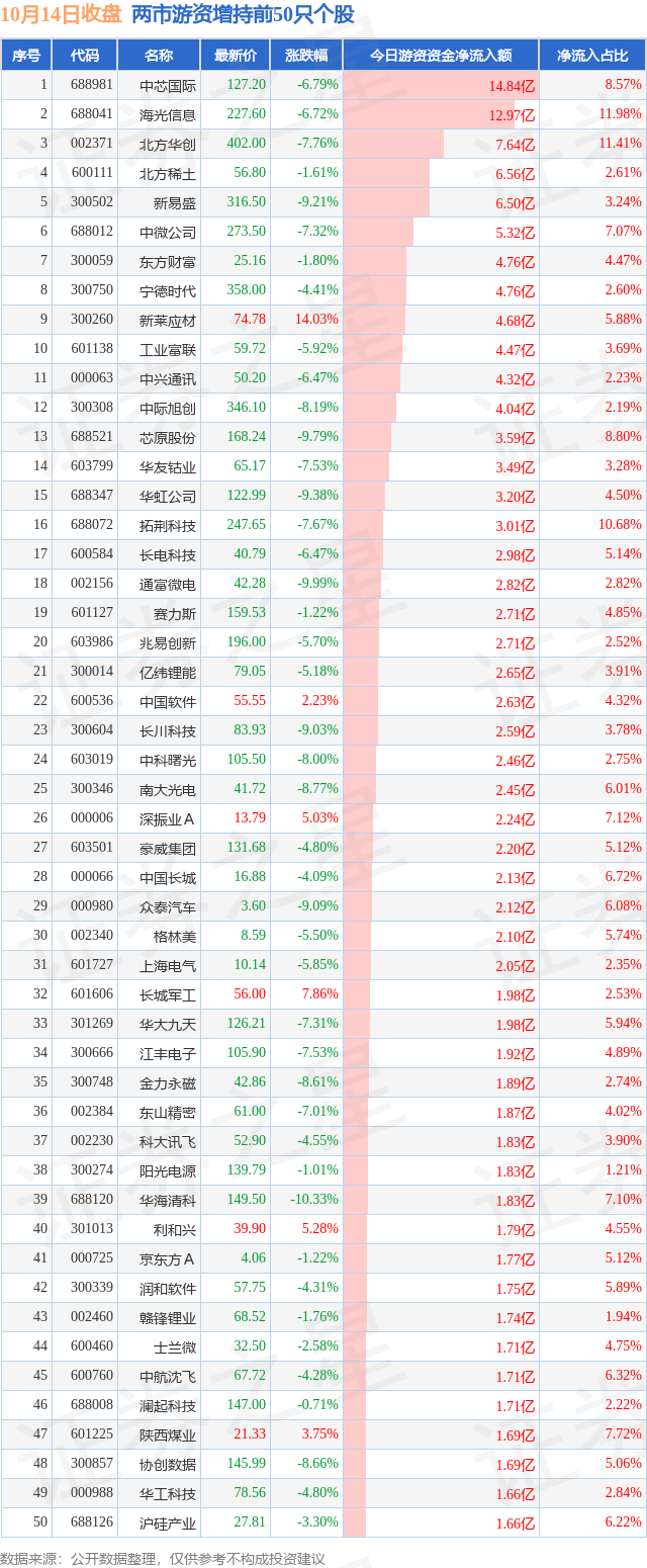 证券之星消息,10月14日A股收盘,沪指跌-0.62%,报收3865.23点;深成指跌-2.54%,报收12895.11点;创业板指跌-3.99%,报收2955.98点。