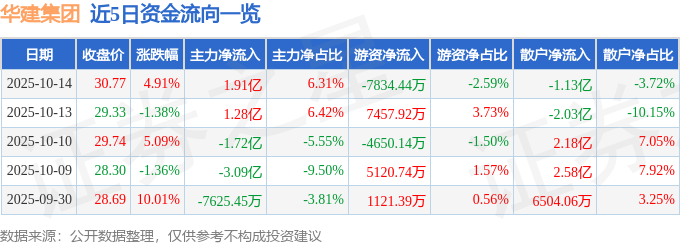 证券之星消息,截至2025年10月14日收盘,华建集团(600629)报收于30.77元,上涨4.91%,换手率10.22%,成交量97.39万手,成交额30.27亿元。