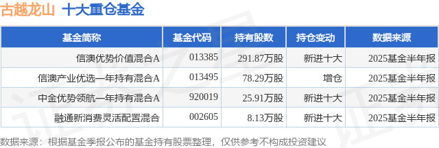 重仓古越龙山的公募基金请见下表: