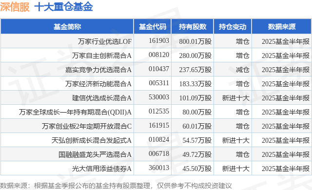 根据2025基金半年报公募基金重仓股数据,重仓该股的公募基金共69家,其中持有数量最多的公募基金为万家基金的万家行业优选LOF。万家行业优选LOF目前规模为78.3亿元,最新净值1.4288(10月13日),较上一交易日上涨0.64%,近一年上涨63.16%。该公募基金现任基金经理为黄兴亮。黄兴亮在任的基金产品包括:万家经济新动能混合A,管理时间为2019年10月30日至今,期间收益率为90.9%;万家自主创新混合A,管理时间为2020年2月10日至今,期间收益率为27.99%;万家创业板2年定期开放混合C,管理时间为2020年8月14日至今,期间收益率为-22.93%。