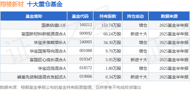 重仓翔楼新材的公募基金请见下表: