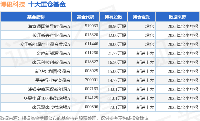 重仓博俊科技的前十大公募基金请见下表: