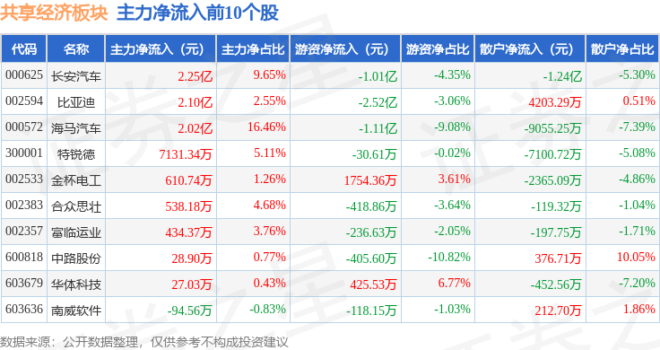 从资金流向上来看,当日共享经济板块主力资金净流入2.31亿元,游资资金净流出3.4亿元,散户资金净流入1.1亿元。共享经济板块个股资金流向见下表: