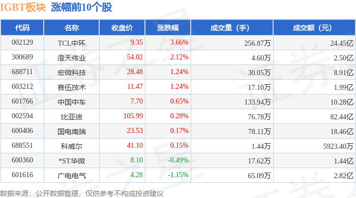从资金流向上来看,当日IGBT板块主力资金净流出58.97亿元,游资资金净流入26.98亿元,散户资金净流入31.99亿元。IGBT板块个股资金流向见下表: