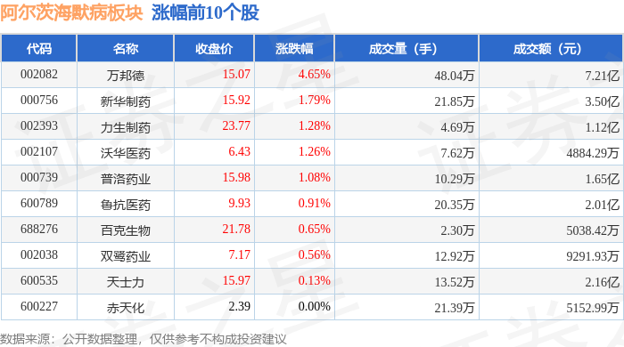 从资金流向上来看,当日阿尔茨海默病板块主力资金净流出4.99亿元,游资资金净流出2351.62万元,散户资金净流入5.23亿元。阿尔茨海默病板块个股资金流向见下表: