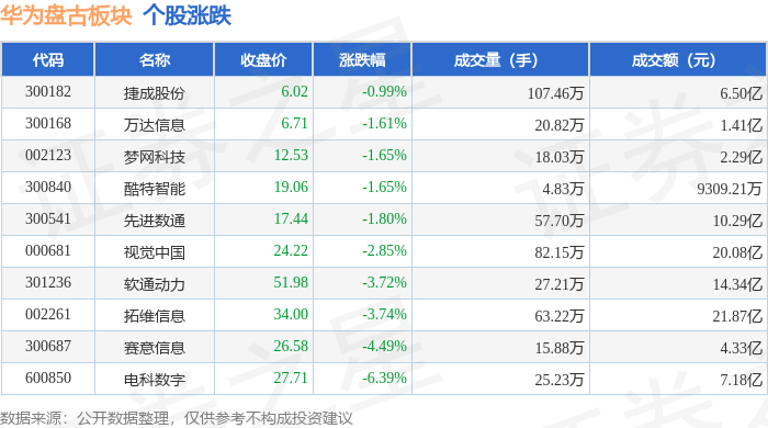 从资金流向上来看,当日华为盘古板块主力资金净流出6.58亿元,游资资金净流入7232.4万元,散户资金净流入5.86亿元。华为盘古板块个股资金流向见下表: