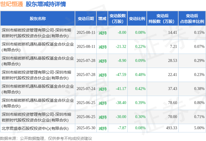 该股近半年内有股东持股变动,合计净减持203.25万股,股东增减持明细如下表:
