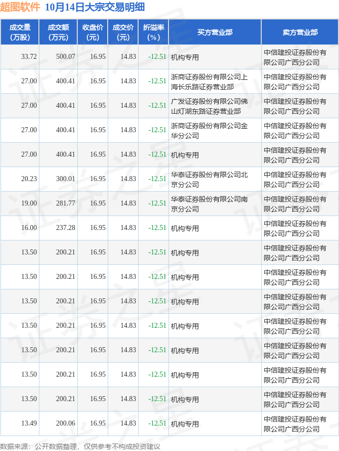 证券之星消息,10月14日超图软件发生大宗交易,交易数据如下: