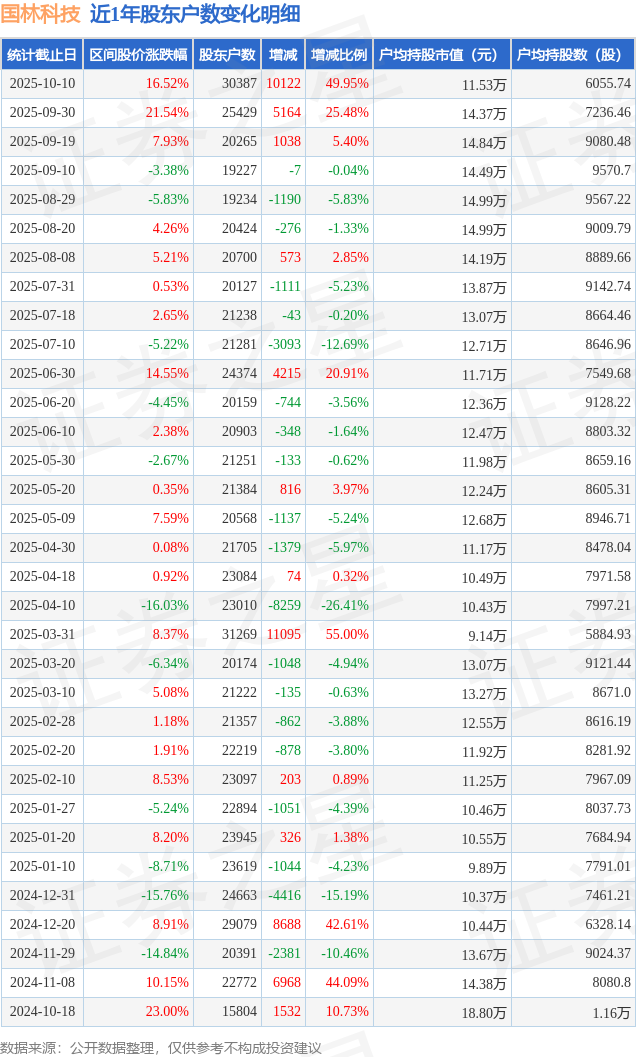 从股价来看,2025年9月19日至2025年10月10日,国林科技区间涨幅为16.52%,在此期间股东户数增加1.01万户,增幅为49.95%。