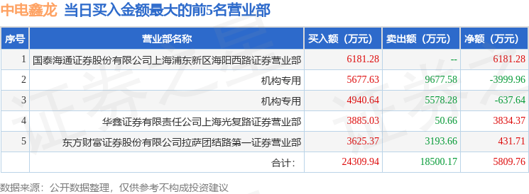 从龙虎榜公布的当日买卖数据来看,机构合计净卖出1.32亿元。章盟主等知名游资榜上有名。(知名游资章盟主一般指国泰海通证券股份有限公司上海浦东新区海阳西路证券营业部席位,根据市场资料整理,仅供参考)