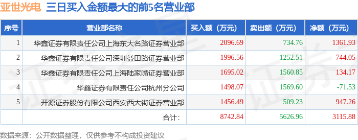 证券之星消息,沪深交易所2025年10月14日公布的交易公开信息显示,亚世光电(002952)因连续三个交易日内,涨幅偏离值累计达到20%的证券登上龙虎榜。此次是近5个交易日内第2次上榜。
