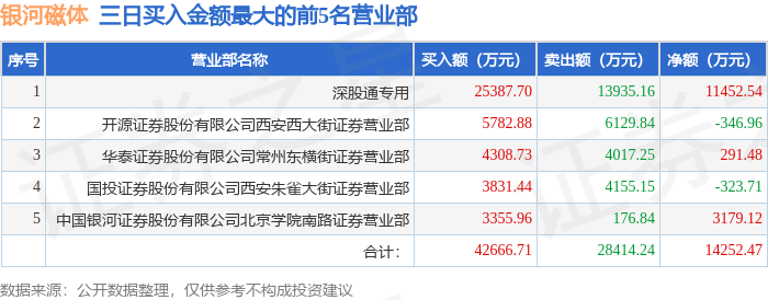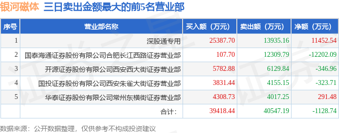 证券之星消息,沪深交易所2025年10月14日公布的交易公开信息显示,银河磁体(300127)因连续三个交易日内,涨幅偏离值累计达到30%的证券登上龙虎榜。此次是近5个交易日内第2次上榜。