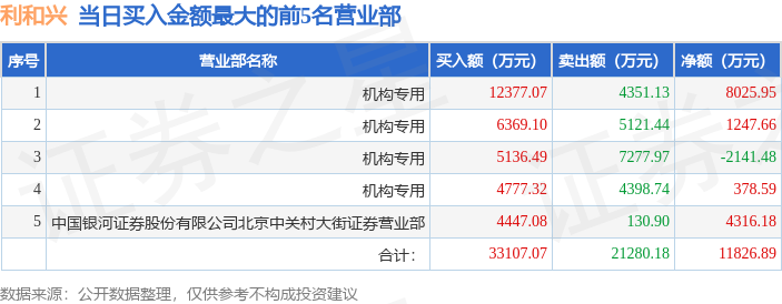 从龙虎榜公布的当日买卖数据来看,机构合计净买入7510.71万元。北京中关村等知名游资榜上有名。(知名游资北京中关村一般指中国银河证券股份有限公司北京中关村大街证券营业部席位,根据市场资料整理,仅供参考)