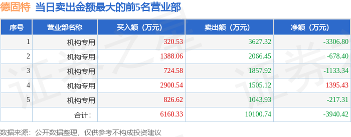 从龙虎榜公布的当日买卖数据来看,机构合计净卖出3940.42万元。
