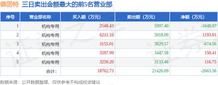 从龙虎榜公布的三日买卖数据来看,机构合计净卖出2663.36万元。