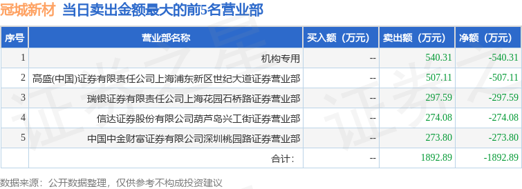 从龙虎榜公布的当日买卖数据来看,机构合计净卖出540.31万元。