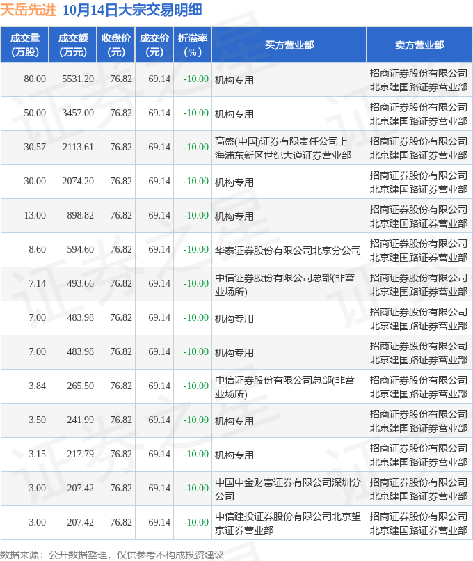 证券之星消息,10月14日天岳先进发生大宗交易,交易数据如下: