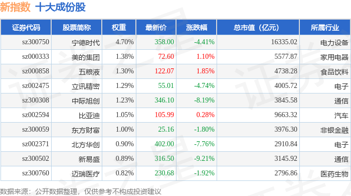 新指数(399100)十大成份股详情如下: