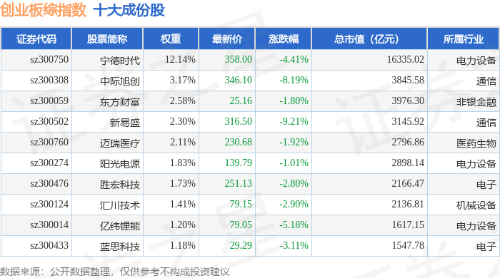 资金流向方面,创业板综(399102)指数成份股当日主力资金净流出合计296.31亿元,游资资金净流入合计115.49亿元,散户资金净流入合计180.82亿元。成份股资金流向详情见下表: