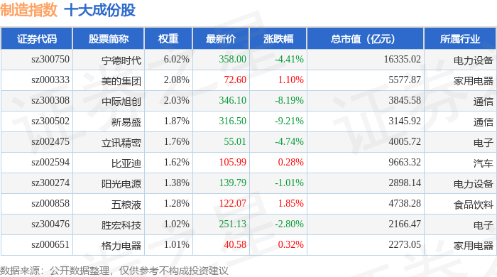 近10日内制造指数(399233)成份股做了调整,新纳入了3只股票,剔除了6只股票。
